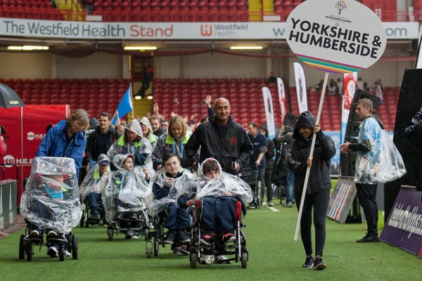 The heavens opened in South Yorkshire on the day of the Sheffield 2017 National Games opening ceremony. We have not known a wetter day but it did not dampen our spirits as these photographs will show. The Yorkshire & Humberside team were last into the ground as they were the hosts of the games and they arrived to a roaring reception.